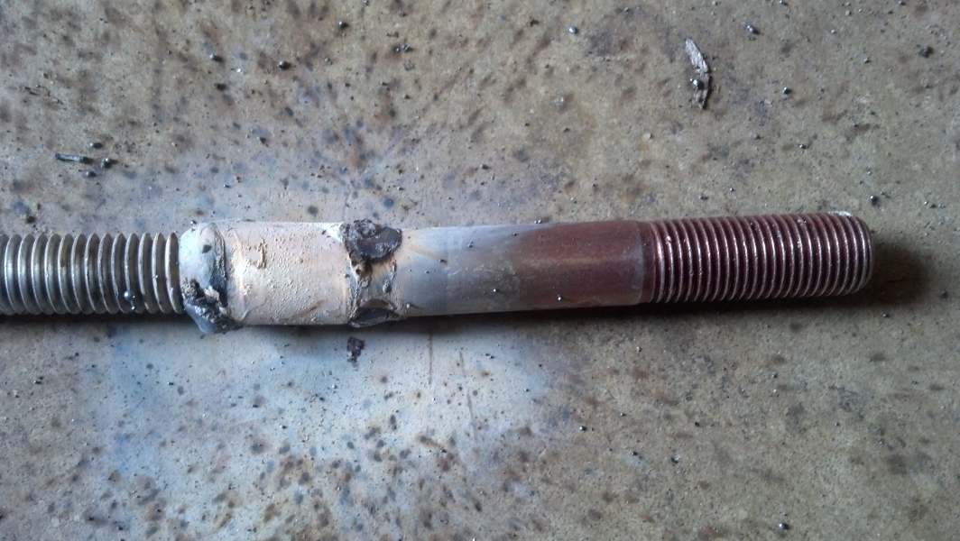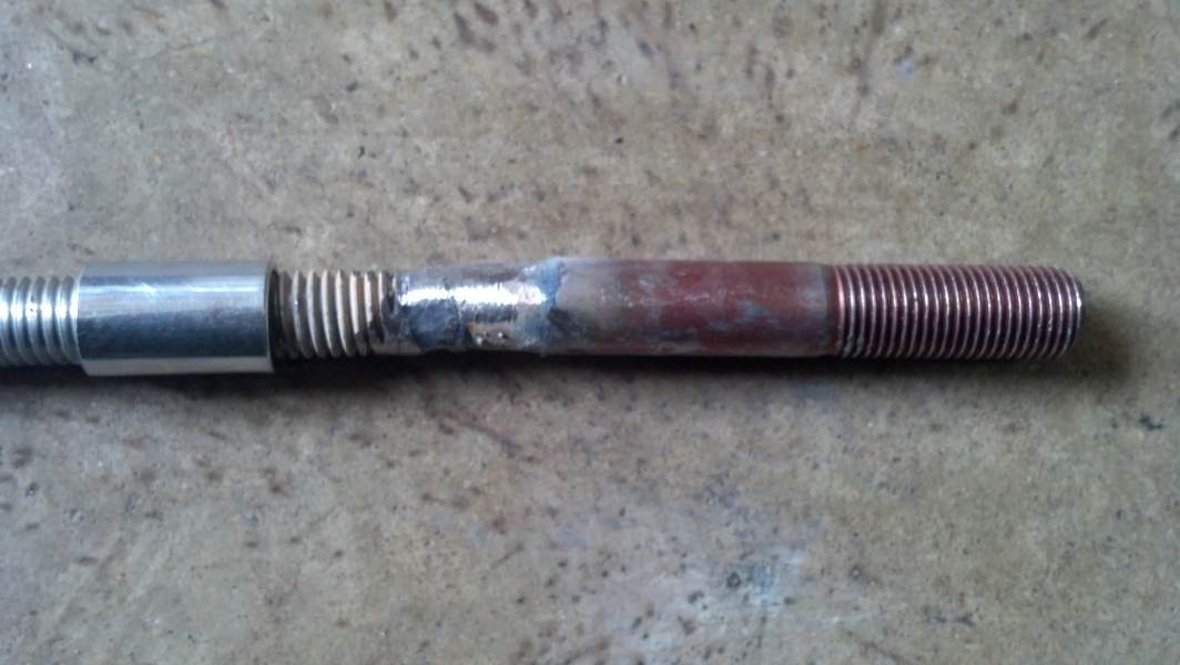 Slide the sleeve up so that it is split between the two bolts. Weld the ends of the sleeve to the bolts and grind the welds flush. Mine is a bit crooked, I was in a hurry. |
